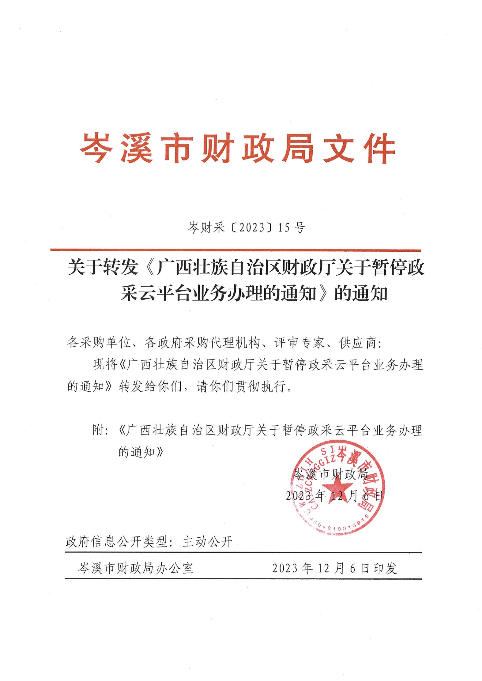 岑财采〔2023〕15号附件《广西壮族自治区财政厅关于暂停政采云平台业务办理的通知》.pdf