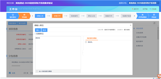 3、平台系统政府采购子系统全流程招标项目业务流程:项目登记、采购预公示(如需)、采购文件、采购公告、场地预约、变更公告、答疑文件、组建评审委员会、招标人评委、报名数量查看、开标情况、评标情况、采购异常(如需)、成交结果公示、成交通知书、采购合同。
