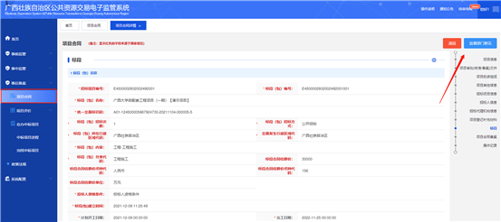 1、电子合同(代理合同)由招标人在事前监管系统发起,招标项目详情页面选择代理机构,选择线上签订招标代理合同签订方式,再点击“跳转电子合同签系统”进行合同签订。