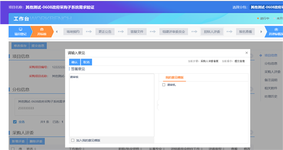 形式评审汇总由评委组长进行操作,全部评委评审完成后,由组长点击“确认”汇总操作。