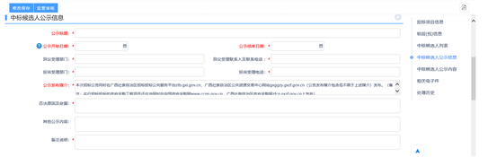 如需要预公示,需在采购预公示菜单编辑公告内容,提交给电子监管系统自动备案通过后,直接推送至外网公示。