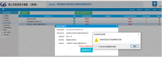 13.2部分投标人在非试点地区插入新锁制作投标文件,投标工具无法识别锁提示如下:
