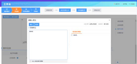 3、平台系统政府采购子系统全流程招标项目业务流程:项目登记、采购预公示(如需)、采购文件、采购公告、场地预约、变更公告、答疑文件、组建评审委员会、招标人评委、报名数量查看、开标情况、评标情况、采购异常(如需)、成交结果公示、成交通知书、采购合同。