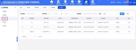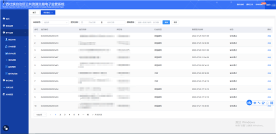 1、各环节信息提交后由电子监管系统审核或备案,其中交易公告、成交公告需要审核,系统根据“项目登记”中的“交易发生行政区域”推送对应的主管部门。