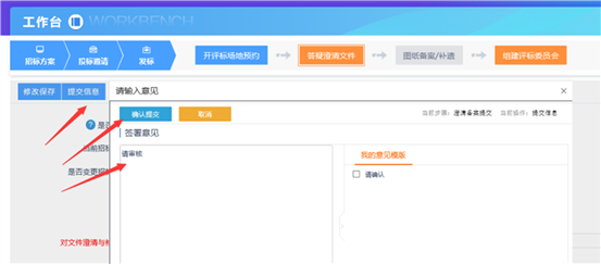 注意:采购文件、变更文件、评标情况环节(确定中标人)需先提交给采购人账号审核确认后,再提交给电子监管系统备案。