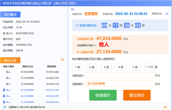 权益类(土地使用权、矿业权、海域权)实现电子竞价;权益类其他类型项目实现电子化业务。 |