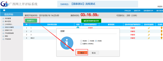 4、网上开标(不见面方式)目前不支持上传在制作投标文件时同步生成的非加密文件,投标人不需再刻录非加密投标文件光盘。网上开标投标文件解密时间为60分钟,在限定时间内投标人不能完成投标文件解密的,视为投标人“投标撤销”,代理机构可按“投标撤销”程序进行处理。