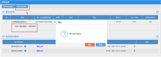 资格评审汇总由评委组长进行操作,如果所有评委均已评审完成,点击“确定”按钮进行汇总。如有问题需要退回重评的,经表决后,可进行“退回重评”操作。