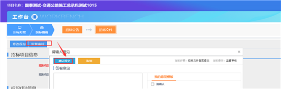形式评审汇总由评委组长进行操作,全部评委评审完成后,由组长点击“确认”汇总操作。