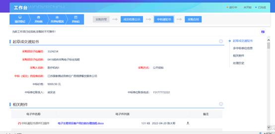 注意:采购文件、变更文件、评标情况环节(确定中标人)需先提交给采购人账号审核确认后,再提交给电子监管系统备案。
