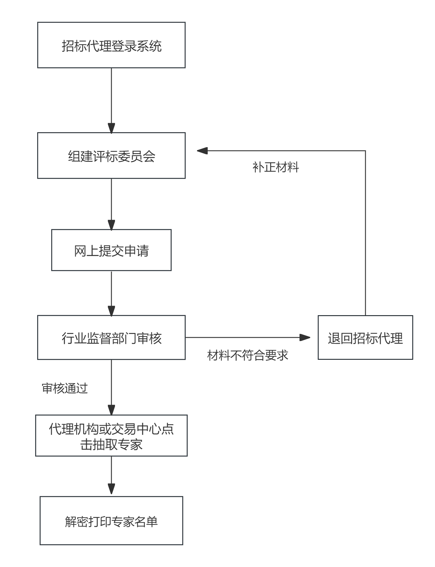 (1)提交申请。招标代理凭CA证书或密码登陆广西壮族自治区公共资源电子交易系统(以下简称“系统”),发起“组建评标委员会”和“招标人评委”(如有),并推送监督部门审核。行业监督部门审核通过后,专家抽取申请信息自动推送到专家管理系统。如审核不通过退回代理机构修改。