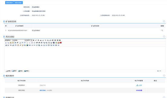 3、交易公告发布中,将宣传视频随公告正文推送到网站。由于浏览器不兼容视频格式文件,建议上传视频压缩包。