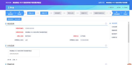 3、平台系统政府采购子系统全流程招标项目业务流程:项目登记、采购预公示(如需)、采购文件、采购公告、场地预约、变更公告、答疑文件、组建评审委员会、招标人评委、报名数量查看、开标情况、评标情况、采购异常(如需)、成交结果公示、成交通知书、采购合同。