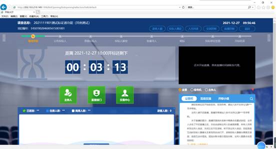 3、建议投标人在项目开标前预留充足时间做好以上各项准备工作,登录平台系统检查是否访问正常,避免因准备工作不足而影响开标。在项目开标前60分钟内,投标人可登录“网上开标大厅”((以各地市实际通知的地址为准)。现场直播一般会有3路画面,分别是开标室全景画面、主持人画面、摇号机画面,3路画面同步全程直播,投标人可自由选择某路观看。