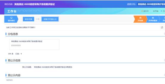 如需要预公示,需在采购预公示菜单编辑公告内容,提交给电子监管系统自动备案通过后,直接推送至外网公示。