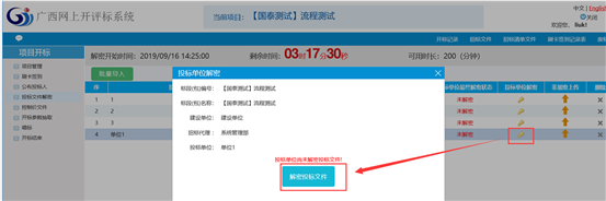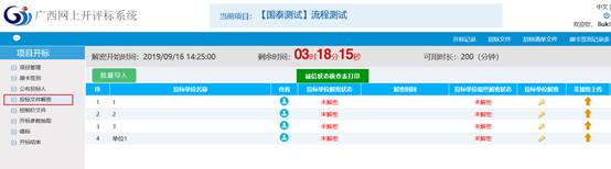 4、网上开标(不见面方式)目前不支持上传在制作投标文件时同步生成的非加密文件,投标人不需再刻录非加密投标文件光盘。网上开标投标文件解密时间为60分钟,在限定时间内投标人不能完成投标文件解密的,视为投标人“投标撤销”,代理机构可按“投标撤销”程序进行处理。