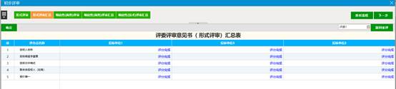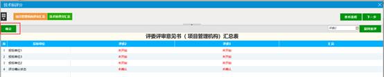 形式评审汇总由评委组长进行操作,全部评委评审完成后,由组长点击“确认”汇总操作。
