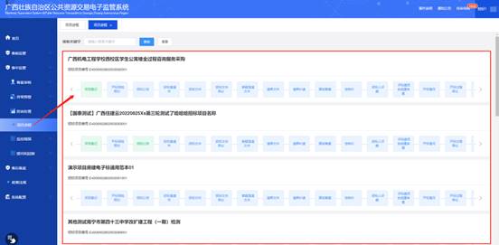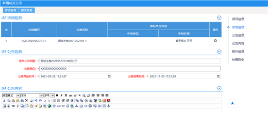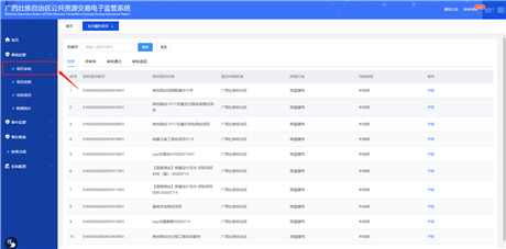 1、各环节信息提交后由电子监管系统审核或备案,其中交易公告、成交公告需要审核,系统根据“项目登记”中的“交易发生行政区域”推送对应的主管部门。