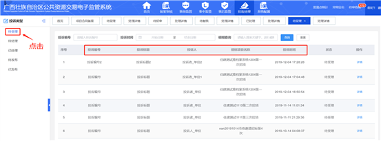 1、各环节信息提交后由电子监管系统审核或备案,其中交易公告、成交公告需要审核,系统根据“项目登记”中的“交易发生行政区域”推送对应的主管部门。