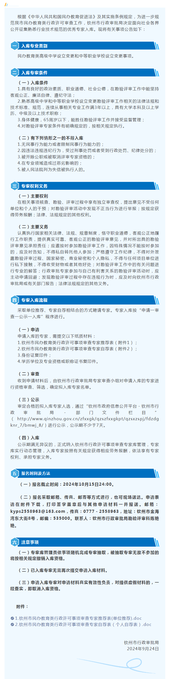 钦州市行政审批局关于公开征集民办教育类行政许可事项审查专家的公告