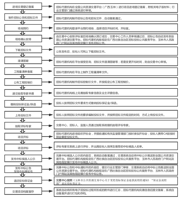 玉林市公共资源交易中心 房屋市政(建设工程)类(电子招投标)项目进场交易流程图