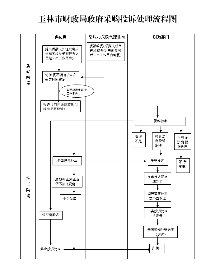 玉林市财政局政府采购投诉受理渠道和投诉处理流程图